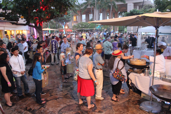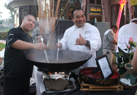 As nearly 2,000 hungry visitors grazed their way through the many creative presentations, Mauna Kea Beach Hotel presented one of my favorites. A pork noodle dish with a Kim Chee broth.