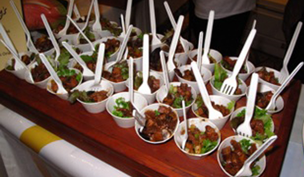 Outside, a handful of chefs continued to cook up their delicacies, despite a sprinkling of rain. On offer in the courtyard was the perennial crowd favorite – Beef Mountain oysters (also known as cow testicles).